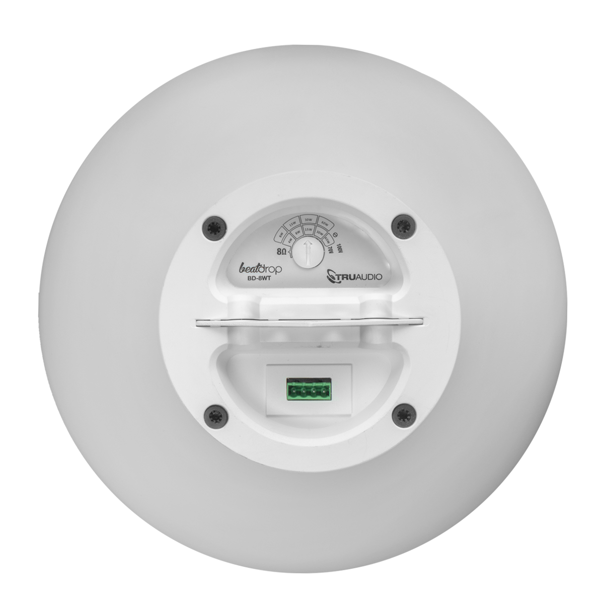 Blending innovation, modern aesthetics and cutting edge acoustics, the BeatDropT™ series speakers are an ideal choice for rooms or venues with open architecture or high-ceilings. The BeatDropTM is an 8-inch, two-way ported pendant speaker designed with an accurate and wide dispersion pattern. Combined with a low bass extension, the BeatDrop™ provides excellent sound reproduction. It is specifically engineered for popular commercial areas such as sports arenas, restaurants, bars, stores, convention centers, lofts ands hopping malls. There are five tap selections for 70v/100v and an 8ohm setting, coming in black or white options. Two Gripple-brand tool-less hanging kits are included for fast and easy mounting. UL 1480 (EUAY) listed.