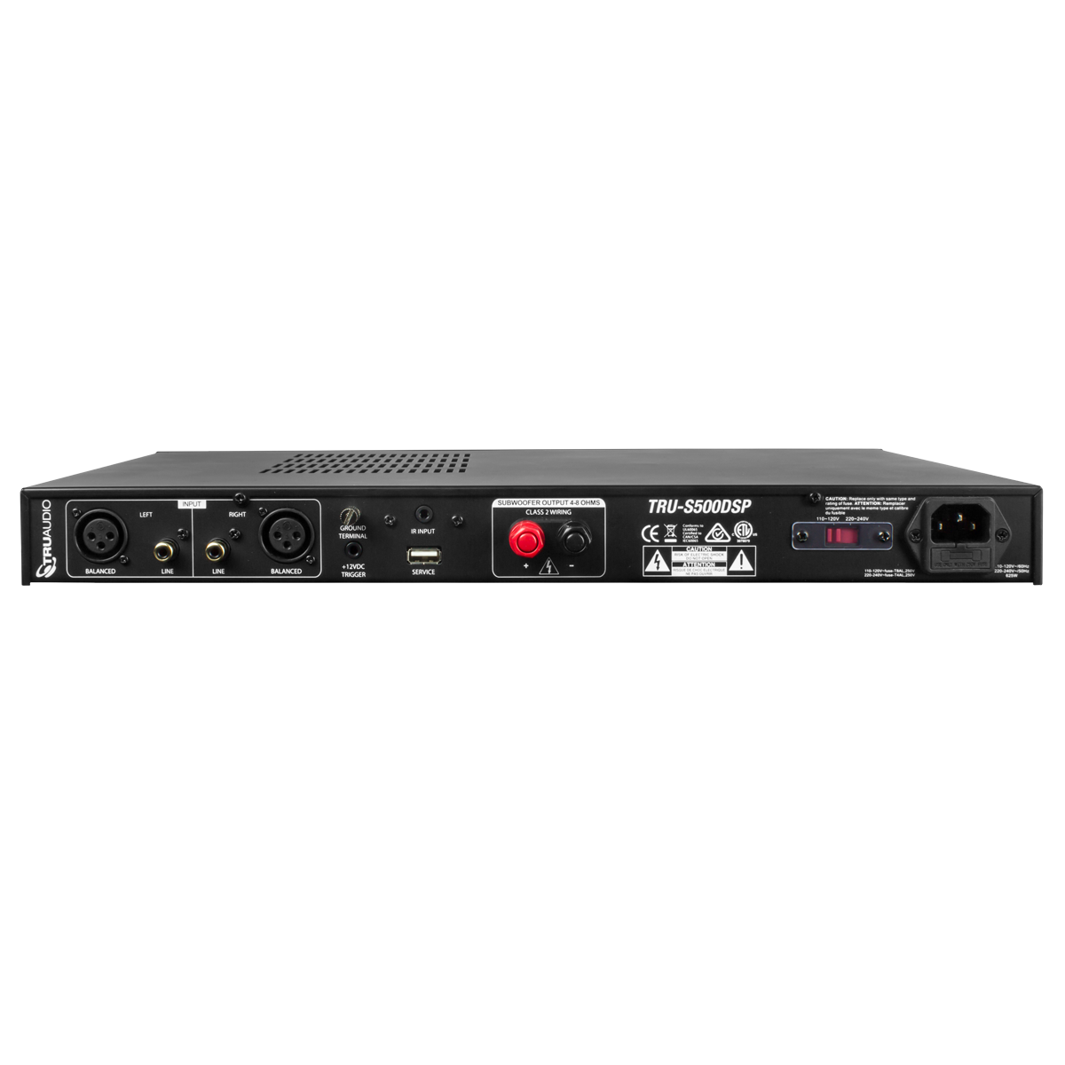 The TruAudio TRU-S500DSP is a powerful mono-channel subwoofer amplifier engineered to deliver deep, controlled, and accurate low-frequency performance to any audio system. Designed for both residential and commercial applications, the S500DSP provides up to 500 watts of clean Class D power, giving your subwoofer the headroom it needs to reproduce impactful bass with precision and authority.